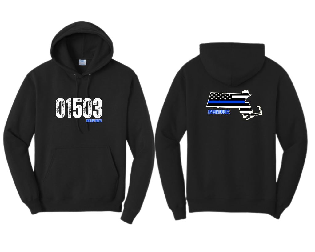 - Hooded sweatshirt with Berlin Police Union graphic printed across chest