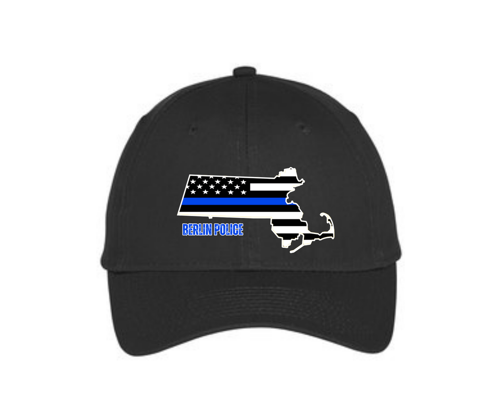 Snapback cap with Berlin Police Union graphic embroidered across cuff